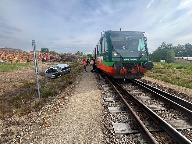 Na nechráněném přejezdu v Bavorovicích se střetl osobní vlak s autem.