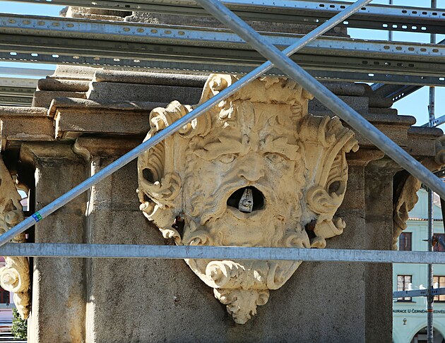 Kašna je dílem jihočeského sochaře J. Dietricha a kameníka Zachariáše Horna. Její dominantu tvoří právě socha Samsona krotícího lva, který stojí na výrazném dekorativním soklu se čtyřmi maskarony – chrliči vody.