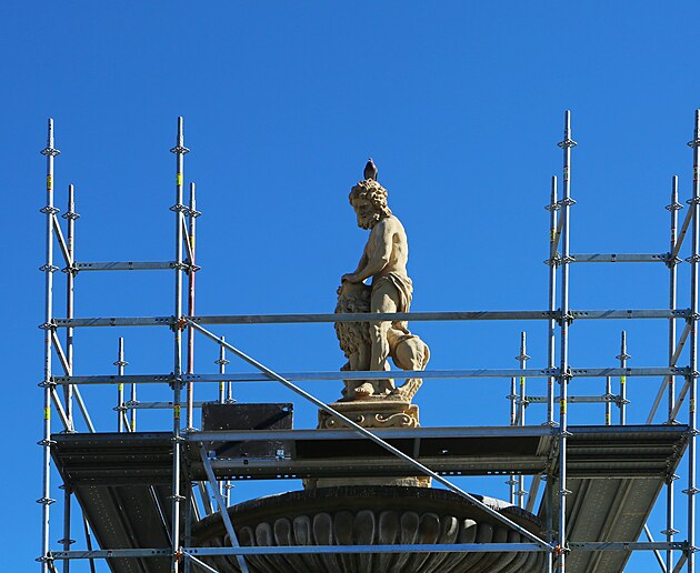 Po stavbě lešení přijde na řadu i plachta, která zakryje dominantu hlavního budějovického náměstí.