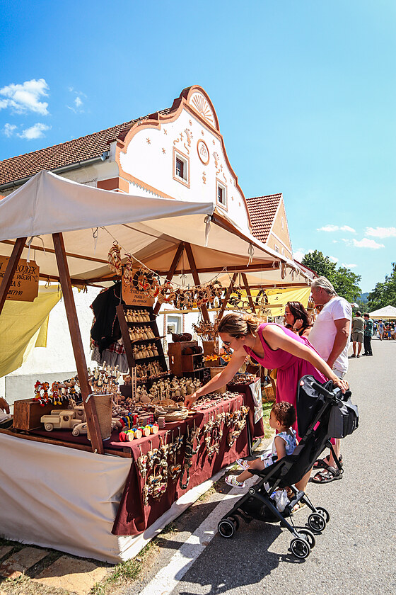 Při selských slavnostech v Holašovicích na Budějovicku si návštěvníci mohou koupit rukodělné zboží nebo se seznámit s tradičními řemesly.