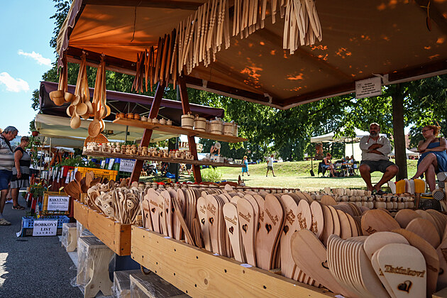 Při selských slavnostech v Holašovicích na Budějovicku si návštěvníci mohou koupit rukodělné zboží nebo se seznámit s tradičními řemesly.