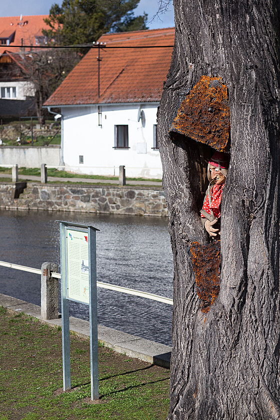 Strom s vodníkem stojí v Husinci na břehu Blanice.