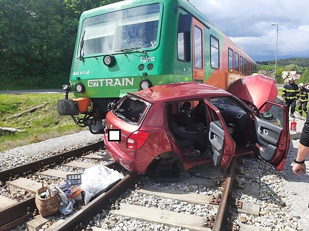 Na přejezdu v Kájově se střetl osobní vlak se Škodou Fabia. (19. května 2025)