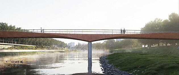 Vítězný návrh zaujal porotu elegantním řešením geometrie spojitého parapetního nosníku se dvěma poli a jedním středním pilířem. Odvážná konstrukce pro dané místo vytvoří charakteristický a zapamatovatelný bod. Navržená barevnost je v odstínu cortenového plechu.