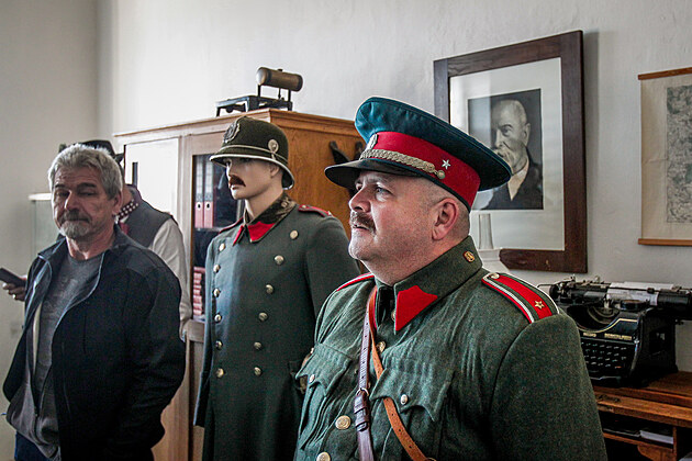 V bývalé škole ve Slověnicích zřídil historický spolek repliku četnické stanice. Prvorepublikovou uniformu oblékl Pavel Šrámek (vpravo).