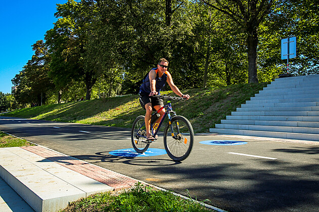 Nová odpočinková zóna v Českých Budějovicích u řeky Vltavy se jmenuje Sluneční ostrov. (19. srpna 2025).