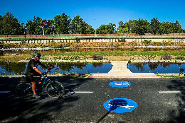 Nová odpočinková zóna v Českých Budějovicích u řeky Vltavy se jmenuje Sluneční ostrov. (19. srpna 2025).