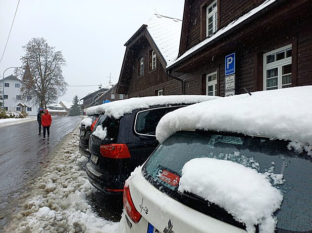 Sněžení na šumavské Kvildě. (27. října 2025)