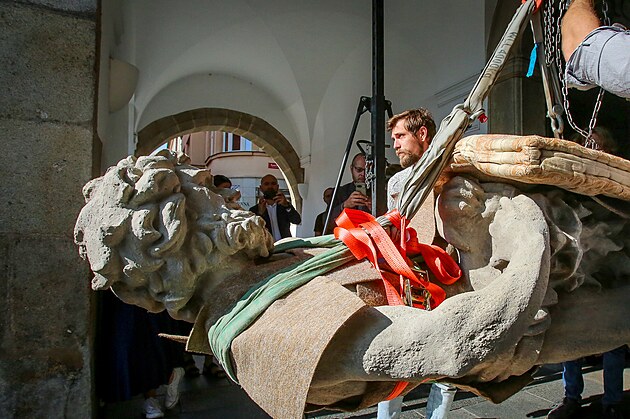 Poprvé po 300 letech opouští originál sochy biblického Samsona České Budějovice. Město jej zapůjčilo na pražskou výstavu Vltava slavná a splavná (7. srpna 2025).
