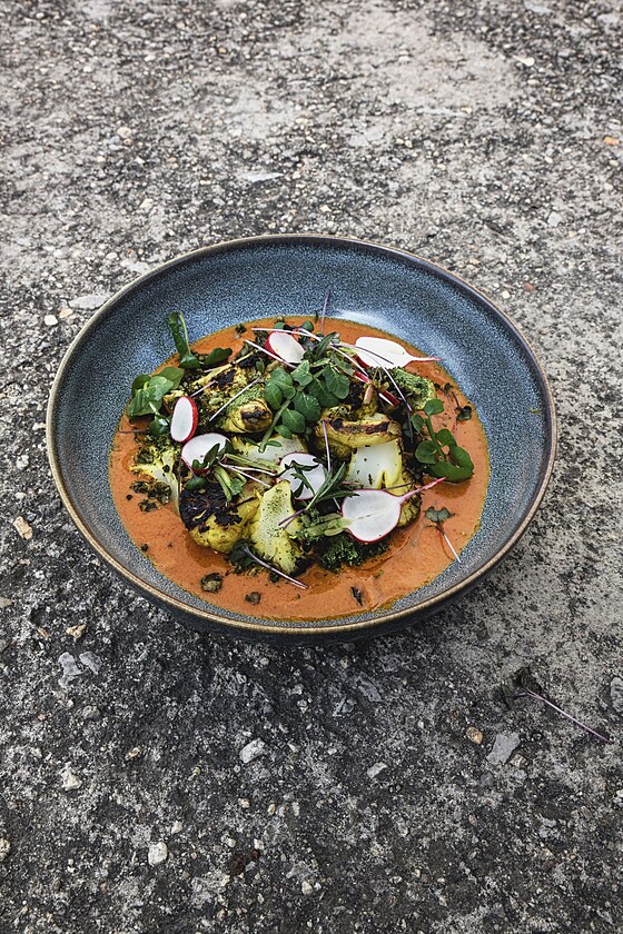 Květák z grilu s jarní gremolatou. I tento recept najdete v Postní kuchařce od kořene po nať.