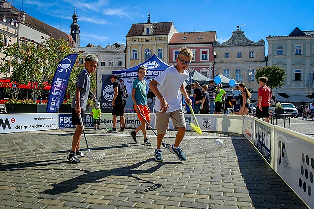 Florbalisté se mohli prohánět po náměstí s hokejkami a míčkem.