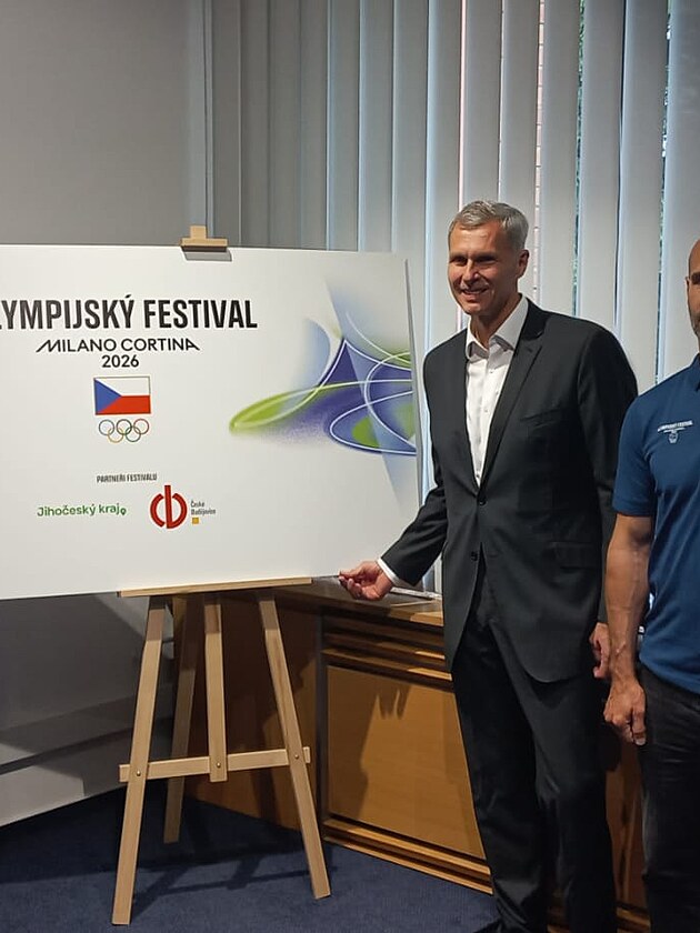Představili festival - (zleva) jihočeský hejtman Martin Kuba, primátorka Dagmar Škodová Parmová, předseda Českého olympijského výboru Jiří Kejval a bývalý hokejista Michal Vondrka.