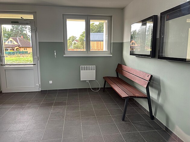 Na lavičky uvnitř se jen práší. Zastávka je totiž uzamčená.