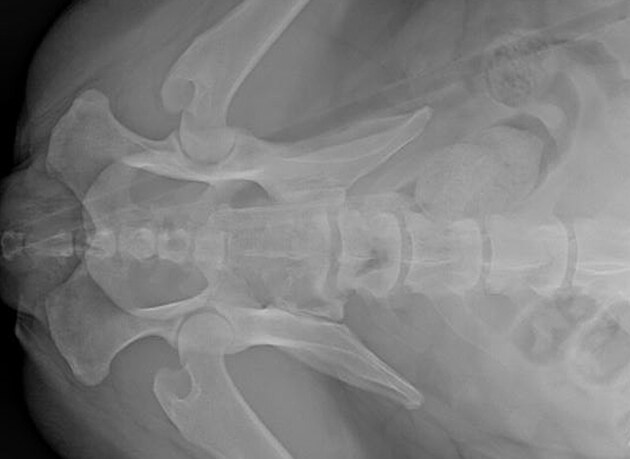 Rentgenový snímek ukazuje, jak šíp pronikl do těla.