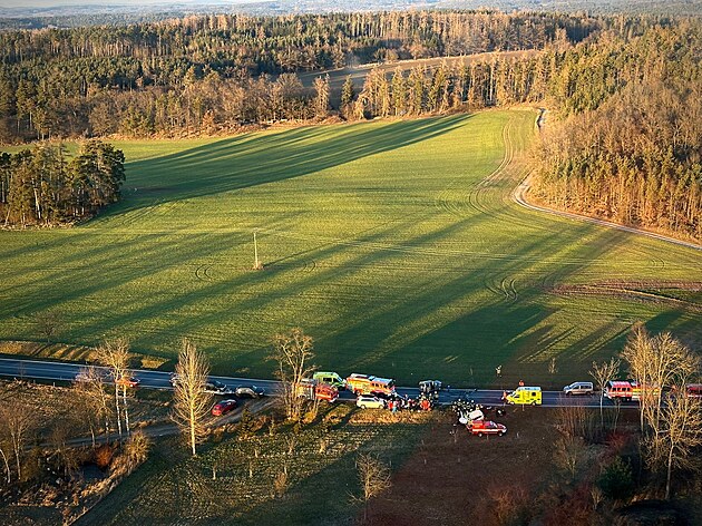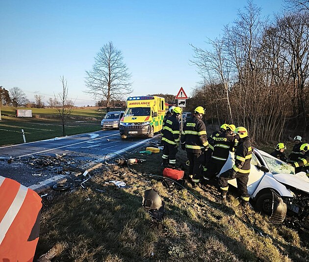 U Střelských Hoštic se čelně srazila dvě osobní auta. Při nehodě se zranilo sedm lidí. (12. ledna 2025)