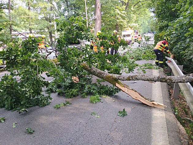 Na jedoucí auto v Majdaleně spadl strom. (10. srpna 2025)
