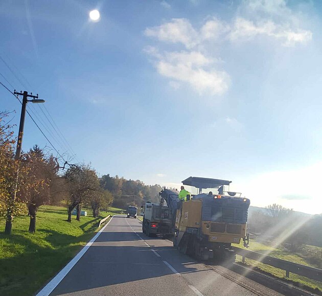 U Strunkovic nad Volyňkou jedna firma obnovila vodorovné značení, jiná ho brzy odfrézovala kvůli opravě povrchu.