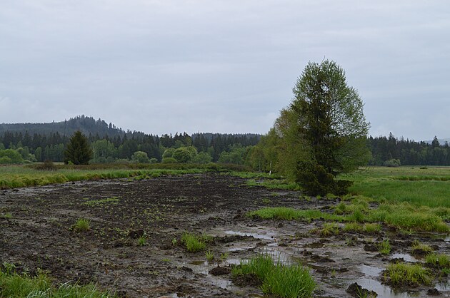Díky projektu se voda drží v krajině, místo se nachází poblíž osady Dobrá nedaleko Volar.