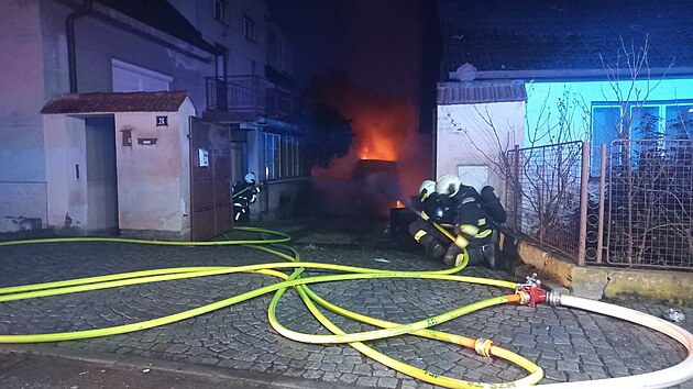 Dodávku hasili profesionální i dobrovolní hasiči.