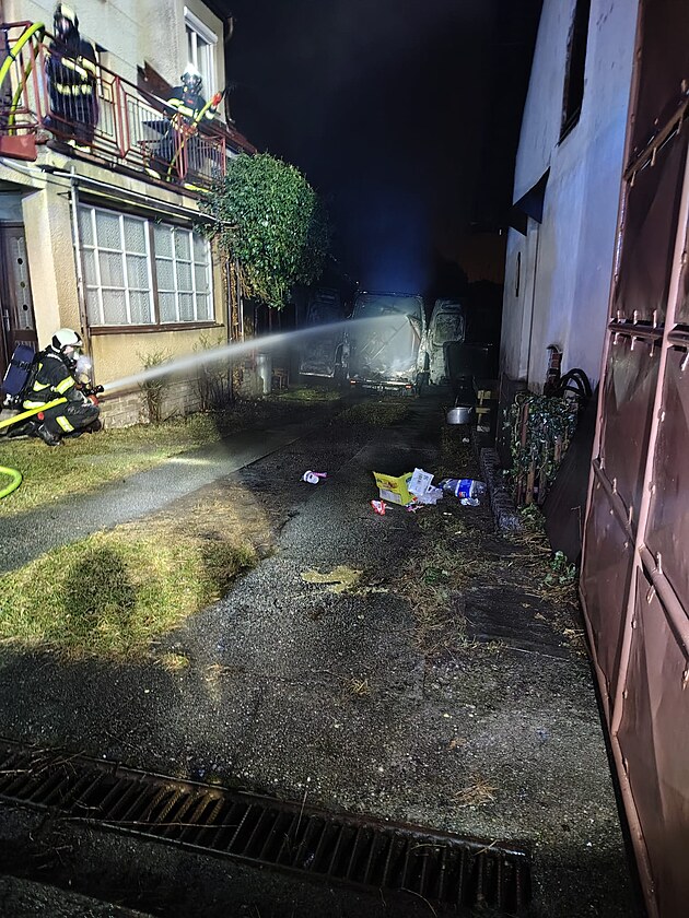 Dodávku hasili profesionální i dobrovolní hasiči.