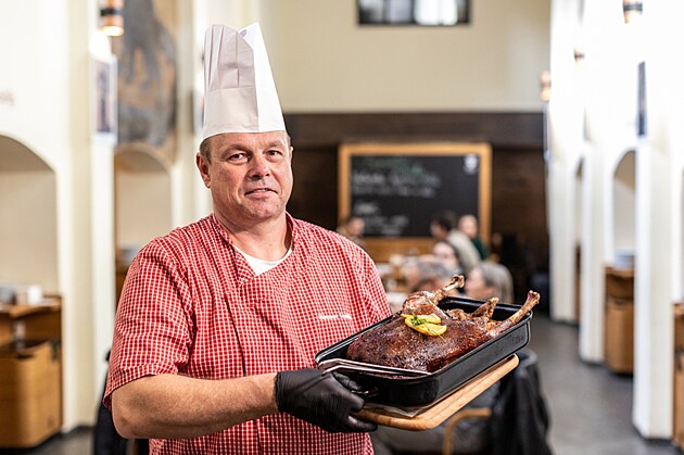 Svatomartinská husa v Masných krámech v Českých Budějovicích. A šéfkuchař Luděk Hauser