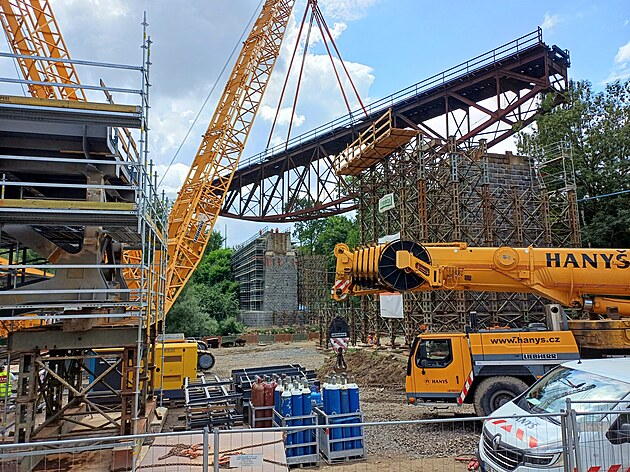Konstrukce váží mnoho tun a bylo třeba ji bezpečně zajistit. (28. července 2025)
