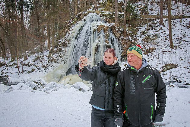 Tisíce lidí z celých jižních Čech vzaly o víkendu útokem Terčino údolí u Nových Hradů. Přijeli se podívat na zamrzlý vodopád.