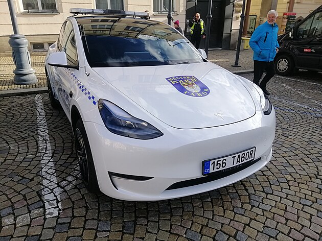 Vozový park Městské policie Tábor se rozšířil o elektromobil Tesla Model Y.