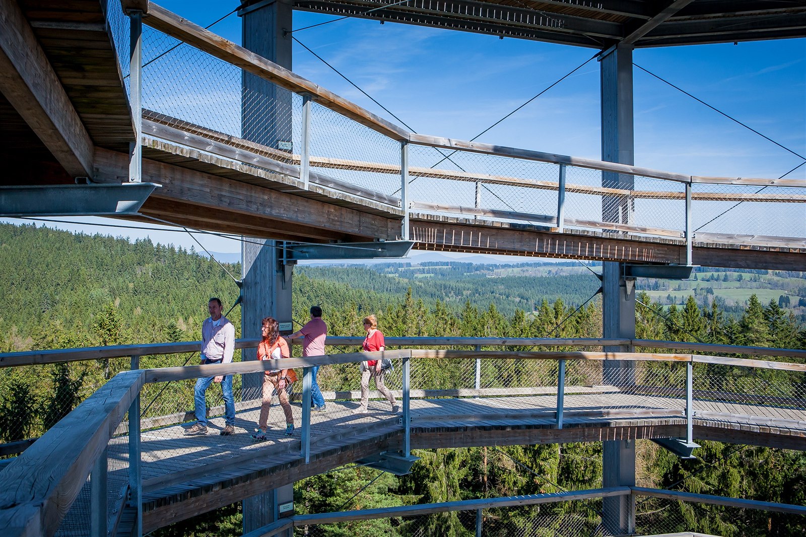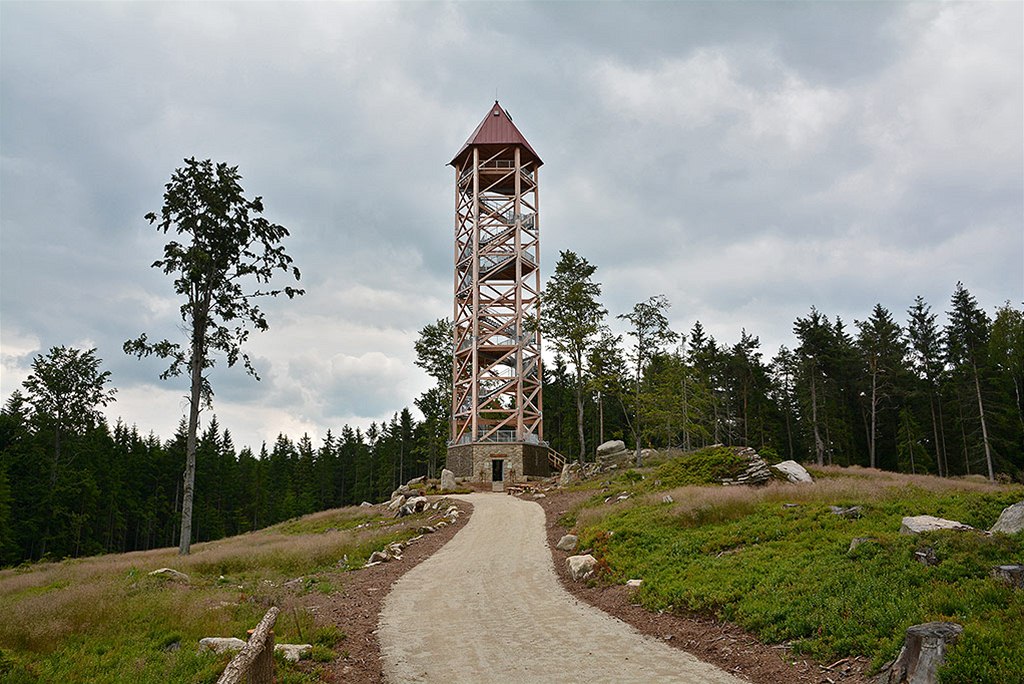 Stezka korunami stromů nabízí unikátní výhled na Šumavu a Lipno.