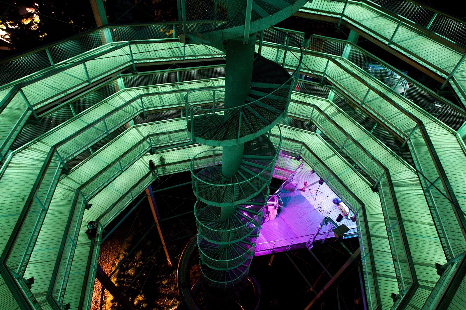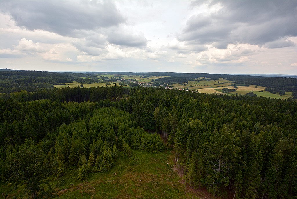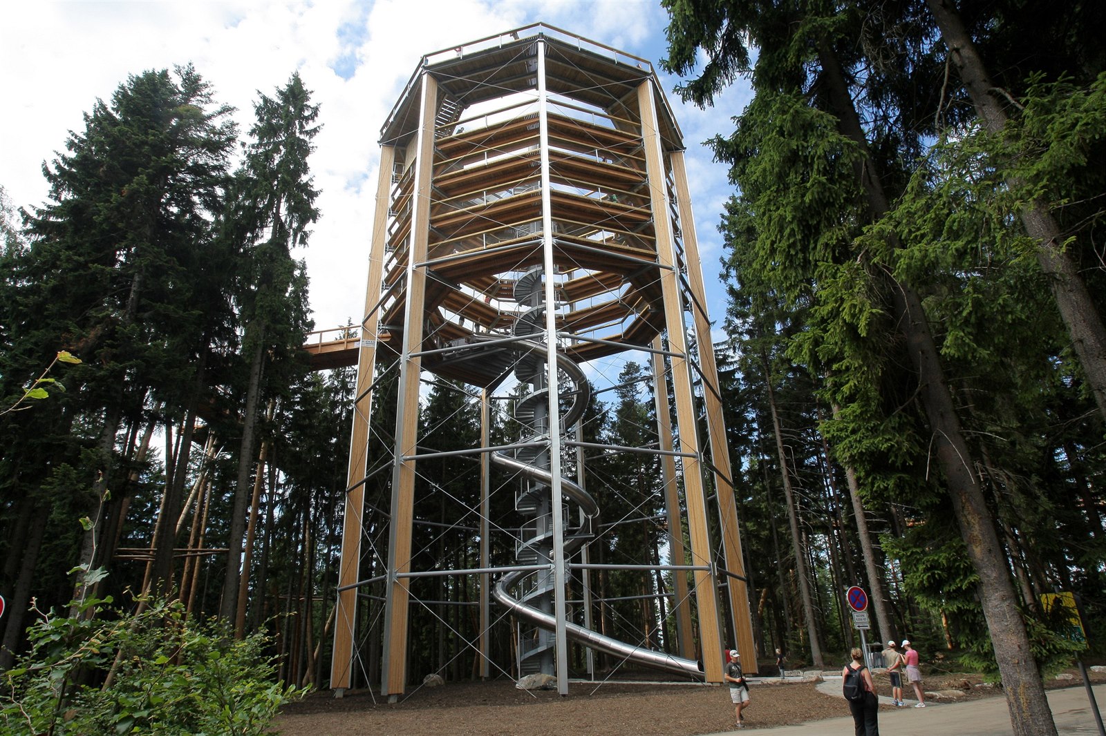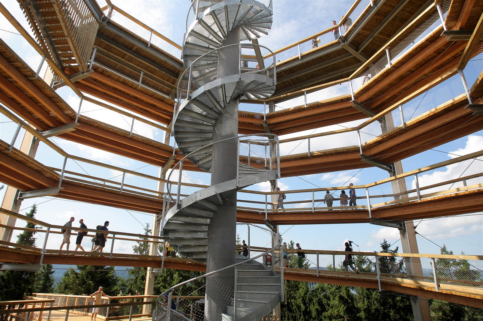 Za pěkného počasí můžete z vrcholu Stezky korunami stromů zahlédnout až 200 km vzdálené Alpy.