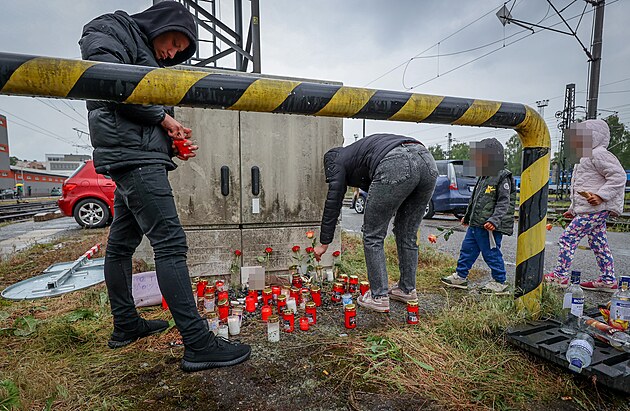 Blízko místa tragédie na vlakovém nádraží v Táboře je pietní místo, kam lidé nosí květiny a zapalují svíčky.