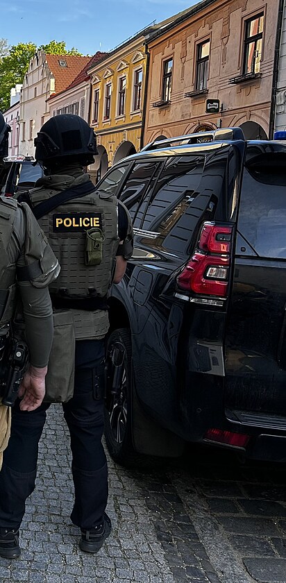 Zákrok policistů v Třeboni proti ozbrojenému muži, který nožem ohrožoval známou. (29. dubna 2025)