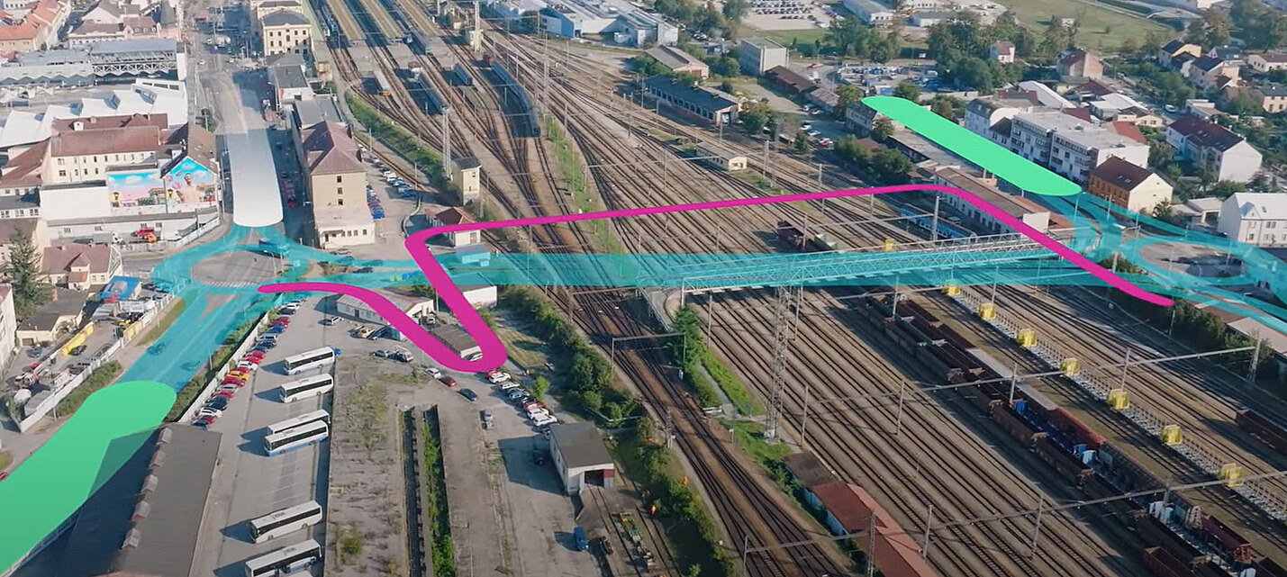 Vizualizace ukazuje tunel i lávku.