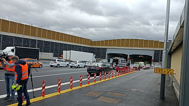 Směr na Prahu je zavřený kvůli údržbě, doprava je svedená do jednoho tubusu.