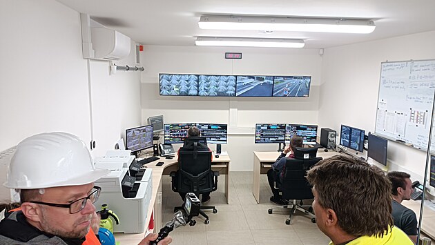 Dispečeři sledují provoz z provizorního řídicího centra. Až bude hotové středisko správy a údržby dálnic nad Borkem, přestěhují se tam.