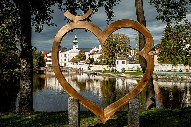 Na soutoku Malše a Vltavy v centru Českých Budějovic vyrostl nový fotopoint – dřevěné srdce s iniciálami města.