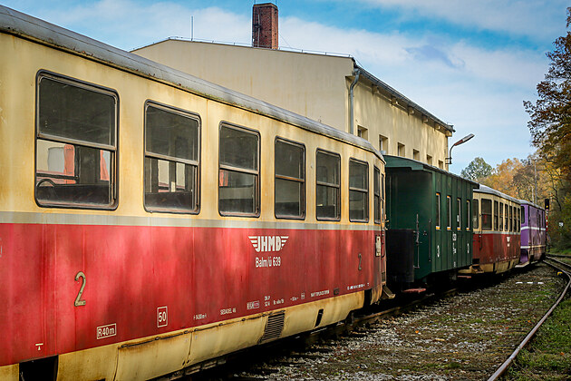 Lokomotivy i vagony, které ještě před třemi lety vozily turisty i lidi z okolí do práce nebo do školy, stojí na nádraží v Jindřichově Hradci. Některé vyjedou na koleje při speciálních jízdách.