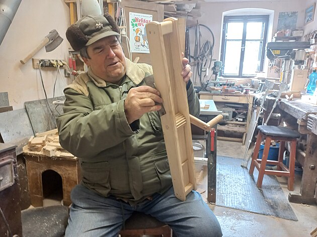 Václav Dejmek vyrábí hrkačky v několika velikostech.