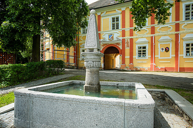 Jihočeskou Vesnicí roku se staly Čestice na Strakonicku. Na snímku je kašna před zámkem.