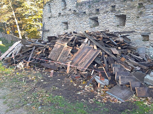 Ještě předminulý týden ležela u hradu velká hromada staré a nefunkční plošiny.