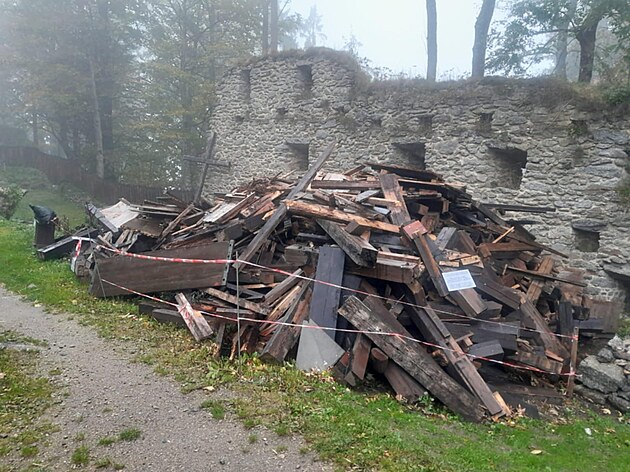 Ještě předminulý týden ležela u hradu velká hromada staré a nefunkční plošiny.
