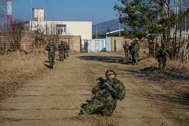 Zásah. Jeden z vojáků to „koupil“. Naštěstí jen při cvičení.