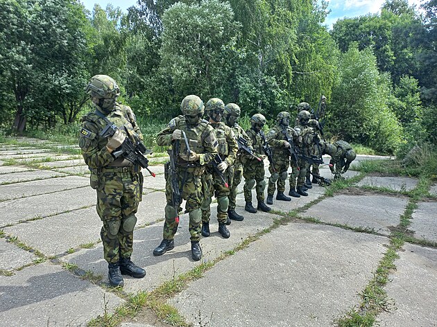 Útvar 25. protiletadlového raketového pluku ze Strakonic připravil pro středoškoláky měsíční cvičení. Na snímku z Boletic mají střelecko taktickou přípravu. Jeden z členů týmu ztratil při akci zásobník, za což následoval trest pro všechny – kliky.