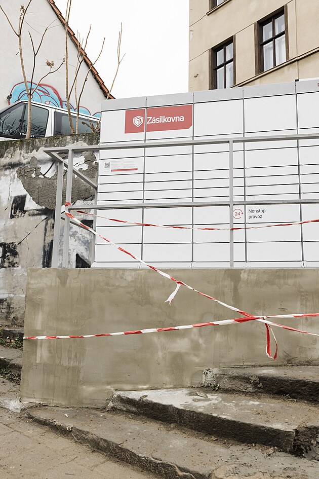 Betonový základ pro nový výdejní box vznikl uprostřed starých schodů.