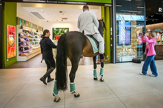 Na koni dorazil až k obchodu, kde pracuje jeho partnerka.