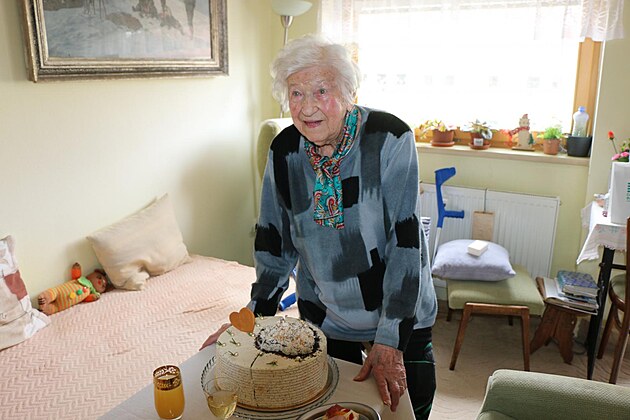 Blažena Strachotová při oslavě narozenin, letos ji bylo 108 let.