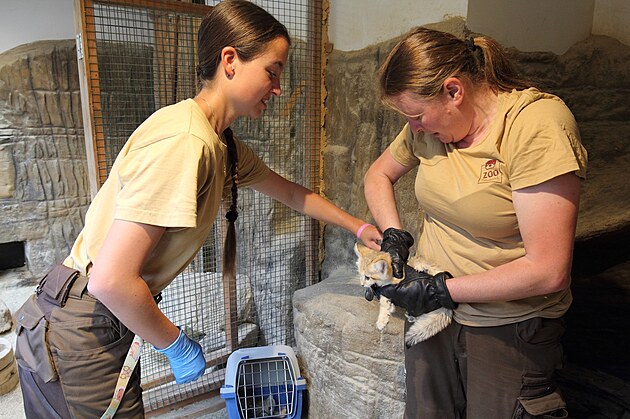 Koťata kočky pouštní absolvovala v hlubocké zoo veterinární prohlídku, očkování a čipování.