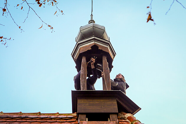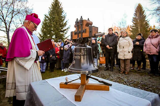 Nový zvon v Mezipotočí na Českokrumlovsku vysvětili a pak ho usadili do zrekonstruované kaple. (12. prosince 2025)