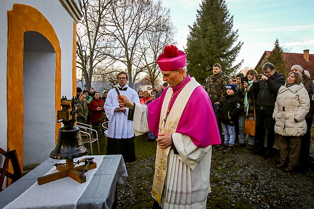 Nový zvon v Mezipotočí na Českokrumlovsku vysvětili a pak ho usadili do zrekonstruované kaple