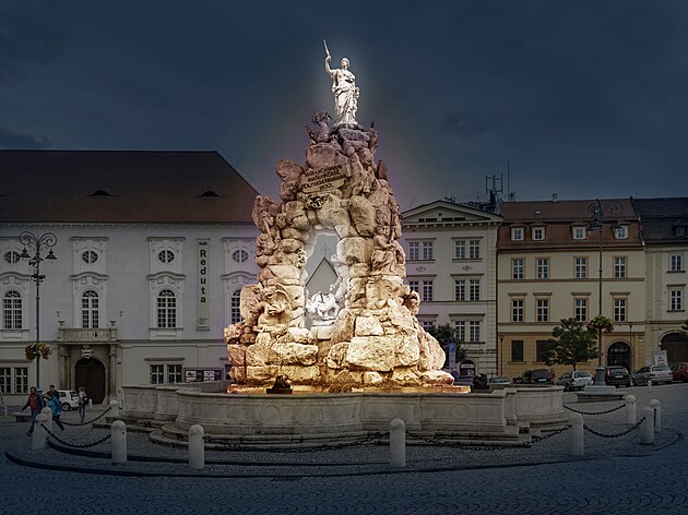 Letos bude také během Vánoc nasvícená kašna Parnas na Zelném trhu v Brně.
